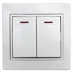 1Э-105-01 Intro Выключатель двойной с подсветкой, 10А-250В, СУ, б.л., Plano, белый (10/200/2400)