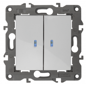 14-1105-01 ЭРА Выключатель двойной с подсветкой, 10АХ-250В, IP20, Эра Elegance, белый (10/100/3500)