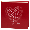 Обложка из плотного картона с обложкой из PVC с дизайном в виде сердца. Внутри содержится блок из 50 белых листов. Альбом рассчитан на 200 фотографий форматом 15 см х 10 см. Для фотографий предусмотрено поле для записей. На каждой странице с фиксатором-окошком из полипропилена можно разместить по 2 фотографии. Переплет книжный.