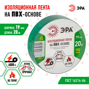 Описание: Изолента ЭРА из ПВХ 19мм х 20м предназначена для маркировки и изоляции проводки. Применяется при монтаже электрический сетей и подключении электрооборудования. Позволяет надежно изолировать и защитить цепь от влаги и пыли, препятствует возникновению короткого замыкания и возгорания. Рекомендуется для использования в ограниченном или труднодоступном пространстве. Высший сорт, соответствует ГОСТ 16214-86. - Удлинение при разрыве 190% - Удобный и комфортный монтаж - Устойчива в UV- лучам, влажности, истеранию - Самозатухающаяся Состав: поливинилхлорид, каучуковый клеевой слой. Тиснение лого ЭРА по всей длине изоленты подтверждает оригинальность товара. Можете быть уверены в качестве ленты и выполненных работ