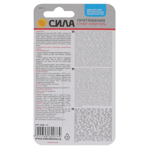 Описание: Супер-клей ГЕЛЬ СИЛА, идеально подходит для быстрого и эффективного ремонта различных предметов мебели, интерьера, обуви и т.д. Накрепко схватывает дерево, кожу, резину, керамику, фарфор и пластик, при этом супер клеи экономично расходуются. Допускается коррекция склеиваемых деталей в течение первых 10 секунд. Заполняет трещины и зазоры до 1 мм, склеивает пористые материалы. Клеевое соединение устойчиво к органическим растворителям. Не растекается и не капает.