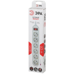 Описание: Сетевой фильтр Эра USF-6es-1,5m-W рассчитан на одновременное подключение большого количества техники. На корпусе расположены 6 розеток с заземлением. Отличительной особенностью модели выступает прочный корпус из негорючего полипропилена, надежный трехжильный провод, терморазмыкатель на 10А, который защищает приборы от перегрузки, и варистор, защищающий подключенные устройства от импульсных помех. На корпусе расположена кнопка выключения. Сетевой фильтр разработан собственными инженерами компании ЭРА, проходит проверку на всех этапах производства, гарантируя высокое качество его исполнения. Длина провода модели составляет 1,5 метра. Удлинитель удобно использовать в пределах одной комнаты. Сетевой фильтр имеет кольцо на шнуре, благодаря чему прибор можно быстро выдернуть из сети.