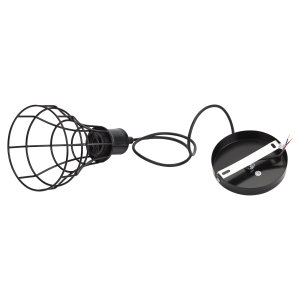 крепится на некотором расстоянии от потолка с помощью провода |