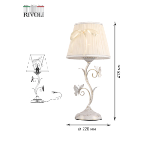 Описание: "Farfalla" в переводе с итальянского - "бабочка". Летняя и очень нежная коллекция. Такая невесомая - вот-вот вспорхнёт! Витиеватый бело-золотой каркас облюбовали светлые бабочки с ажурными крыльями. Плафоны "вырастают" из узорчатых цветочных розеток. Тканевые абажуры украшены бантами оттенка беж. Эта серия о лете, загородном отдыхе и любви к природе. Коллекция дополнена настольной лампой.