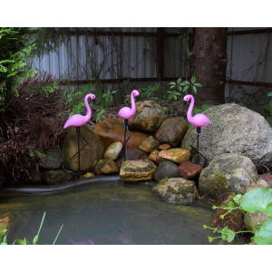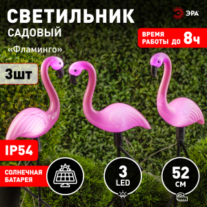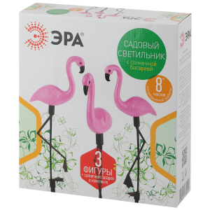 Беспроводной led светильник ERADF008-06 "Фламинго" станет чудесным украшением вашего сада. Удобная конструкция и упрощенная сборка позволят Вам разместить подсветку около клумбы, украсить пруд, территорию рядом с бассейном, необычно подсветить тропинку или вход в террасу. 3 пластиковые фигурки высотой 52,5 см крепятся на штекер и с легкостью втыкаются в землю.