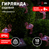 Уличная гирлянда ERADG012-07 "Фламинго" станет необычным украшением вашей дачной территории. Удобная конструкция и простая сборка позволят Вам расположить подсветку для сада среди растений, необычно подсветить аллею, вход в дом, фасад здания или окно. Гирлянда состоит из 10 пластиковых фигурок высотой 10 см. Гирлянда садовая уличная функционирует на солнечной батарее. Данный способ получения энергии является наиболее экологичным и энергоемким. Питание происходит во включенном режиме. С наступлением темноты фламинго загораются. Фигурки заливаются спокойным розовым светом и освещают территорию или объект вокруг себя, создавая романтическую атмосферу.