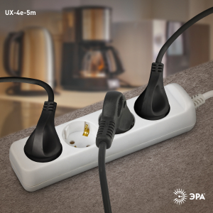 Описание: Удлинитель электрический Эра UX-4e-5m с заземлением, ПВС, 3x0,75мм2, 4 розетки, 5 м. Рассчитан на максимальную мощность 10А/2200 Вт. Удлинитель Эра станет Вашим надежным помощником, если Ваши любимые электроприборы находятся далеко от розеток. Провод в удлинителях Эра сделан из 100% меди, что делает его абсолютно пожаробезопасным. Корпус выполнен из ударопрочного и негорючего пластика (полипропилен). Вилка обеспечена кольцом для удобного извлечения ее из розетки. Модель удлинителя на 10А позволяет подключить бытовые приборы общей нагрузкой до 2200Вт. Дизайн удлинителя разработан в России командой Эра Style.