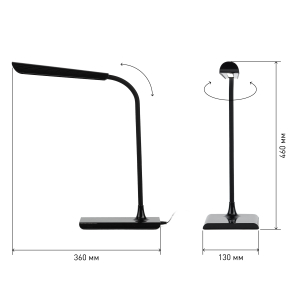 Светильник со светодиодами (LED) в качестве источников света. Цветовая температура 4000К. Сенсорное переключение. Плавный диммер для регулировки яркости. Функция беспроводной зарядки. В комплекте внешние модули беспроводной зарядки: Lightning (для iPhone 5 и выше) и Micro-USB (для Android). USB разъем для зарядки устройств. Высота плафона регулируется гибкой стойкой, направление света регулируется поворотом плафона в любом направлении. |