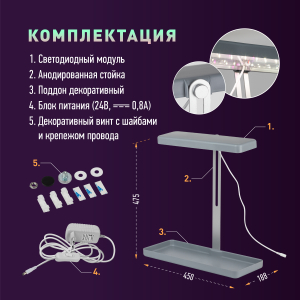 Фитосветильник полного спектра ЭРА FITO-20W-QLED с поддоном, мощность — 20 Вт, серый цвет корпуса. Удобный поддон эргономичной формы, расположенный прямо под светильником, аккуратно разместит в себе горшки или ящики, задержит влагу и просыпавшийся грунт. Плафон и поддон изготовлены из поликарбоната премиум-класса с матовым покрытием, на котором не остаётся следов от пальцев и жирных пятен. Стойка изготовлена из анодированного алюминия, устойчивого к возникновению царапин и сколов.