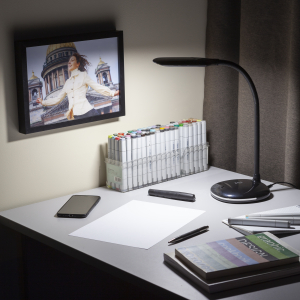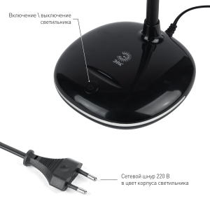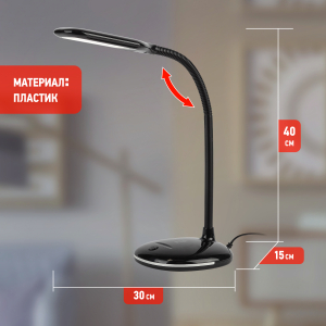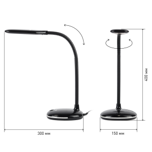 Настольный светильник со светодиодами (LED) в качестве источников света. Нейтральный белый свет - цветовая температура 4000К. Выключатель на основании. Гибкая стойка. |