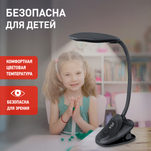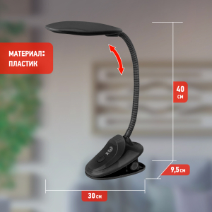 Настольный светильник со светодиодами (LED) в качестве источников света. На прищепке. Нейтральный белый свет - цветовая температура 4000К. Выключатель на прищепке. Гибкая стойка. |