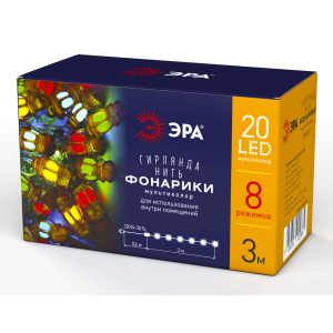 Описание: Новогодняя светодиодная гирлянда ЭРА "Фонарики" (арт. Б0041897) поможет быстро и просто украсить к праздникам дом, офис или общественное пространство. 20 ламп этой гирлянды представляют собой миниатюрные разноцветные фонарики. Внутри каждого фонарика - яркие светодиоды. Эта 3-метровая гирлянда с 8 режимами работы отлично выглядит как во включённом, так и в выключенном состоянии. Стилизованные под уличный ретро-фонарь лампочки сами по себе являются украшением пространства. По сути эта гирлянда 2 в 1: ёлочные игрушки + иллюминация. Вы можете украсить ёлку одной лишь гирляндой ЭРА "Фонарики" - и новогоднее дерево уже будет иметь нарядный завершённый вид. LED-технология минимизирует затраты на электроэнергию, используйте эту гирлянду в течение всех новогодних праздников без страха получить большие счета. Создавайте праздничное настроение вместе с ЭРА!