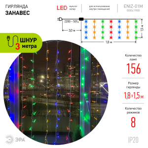Описание: Новогодняя гирлянда ЭРА формата "дождь" или "занавес" с разноцветными светодиодами и 8 режимами работы - арт. Б0041900. На каждой нити расположены яркие LED-диоды конкретного цвета - зелёные, синие, красные, оранжевые. В совокупности это создаёт интересный волнообразный световой рисунок. Гирлянда имеет оптимальную для дома или офиса длину - 1,8 м. Длина каждой нити - 1,5 м. Данная гирлянда идеальна для украшения окон, стен, входных групп. Провода изготовлены из меди без примесей и из прочного поливинилхлорида, не поддерживающего горение. Сразу 156 светодиодов создают праздничную атмосферу и поднимают настроение.