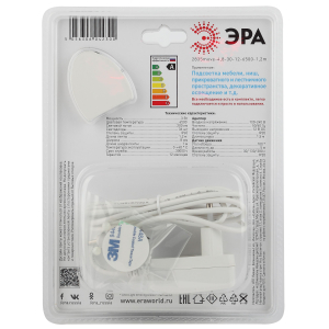 ЭРА Комплект светодиодной ленты 2835move-4,8-30-12-6500-1,2m (30/900) со степенью защиты от пыли и влаги IP65 - идеально подходит для подсветки лестничных и прикроватных пространтств, проходных помещений.