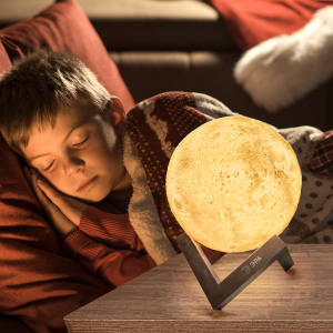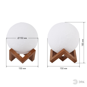 Светильник-ночник со светодиодами (LED) в качестве источников света. Диаметр шара 15 см. Работает от встроенного литиевого аккумулятора. Подзарядка от USB. USB кабель в комплекте. Сенсорное управление - переключение прикосновением. Два цвета свечения - белый и желтый. Плавная регулировка яркости. Рельеф поверхности шара повторяет рельеф настоящей Луны. В комплекте сборная пластиковая подставка "под дерево" (в отличие от деревянной долговечная, практичная, с гладкой поверхностью). |
