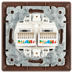 Описание: Розетка информационная на два порта 2xRJ45, серии Solo, скрытой установки 4-304-05 цвет антрацит. Выполнена из термопластика, укомплектована одноместной рамкой.