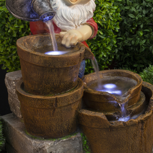 Описание: Уличный фонтан Green Apple Гном с лейкой, GAUF-01, 62 x 37,5 x 37 см. Уличные фонтаны - это элегантные, фундаментальные изделия, предназначенные для установки на открытом воздухе. Садовые фонтаны - отличное решение, если Вы хотите украсить ландшафт участка своего загородного дома, коттеджа или дачи с минимальными затратами сил и средств. В последнее время садовыми фонтанами облагораживают территории не только частных домовладений, но и общественных мест для отдыха: ресторанов, кафе, гостиниц, санаториев, пансионатов, парков, скверов и т. д. Имеет встроенную подсветку. Аккуратно выньте фонтан из коробки. В комплект входит насос, его необходимо установить внутрь фонтана на присоски. Затем присоединить к насосу пластиковую трубку, которая закреплена внутри фонтана. Фонтан имеет замкнутую систему, с помощью насоса вода направляется вверх, затем стекает по декоративным элементам вниз.