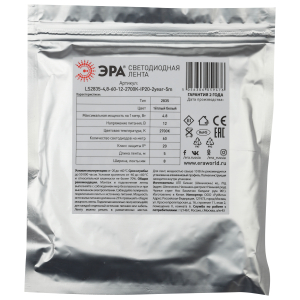 ЭРА Лента светодиодная LS2835-4,8-60-12-2700K-IP20-2year-5m (140/4200) со степенью защиты от пыли и влаги IP20 - современный способ создания внутреннего освещения, подсветки ниш, лестничного пространства, систем хранения, а также декоративного и художественного оформления любых объектов и форм в помещениях. Легко и быстро устанавливается на любой гладкой поверхности с помощью скотча, расположенного на оборотной стороне ленты. Используя алюминиевый профиль, можно создавать необычные и функциональные решения освещения в Вашем интерьере. Рабочее напряжение ленты составляет 12В, а мощность равна 4,8 Вт/м. Светодиодная лента обладает световым потоком 500 Лм/м, и цветом свечения - теплый белый (2700 K)