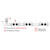 В упаковке находится 4,7 метровая лента из 40 модулей, на каждом модуле расположено по 2 светодиода с цветовой температурой 2700 К. Степень защиты модулей: IP65 применение внутри и снаружи помещений. |