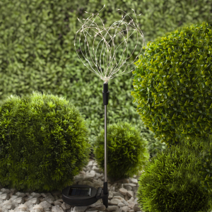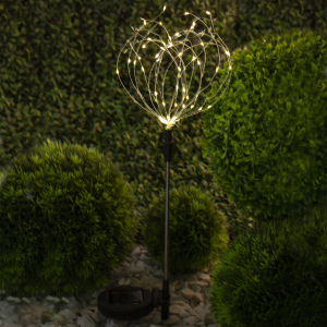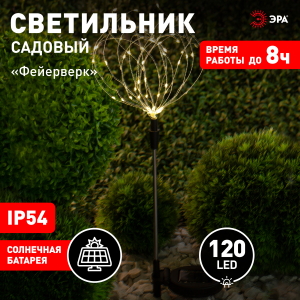Описание: Беспроводной led светильник ERAUF024-01 "Фейрверк" говорит сам за себя! Он станет необычным украшением Вашей дачной территории. Небольшие размеры позволят Вам расположить светильник в саду, украсить декоративный пруд, необычно подсветить тропинку или придомовую территорию. Конструкция из пластика высотой 31 см с легкостью вставляются в землю. Уличный светильник работает на солнечной батарее. Такой тип получения энергии является наиболее экологичным, энергоемким, а также бесшумным. Питание происходит во включенном режиме, в дневное время. С наступлением темноты мелкие LED диоды загораются желтым светом. Территория вокруг светильника сразу приобретает праздничный характер. Необычный дизайн конструкции в виде хаотично торчащих проволок напоминает салют. Солнечная батарея предусматривает 8 часов непрерывной работы. Высокая степень защиты от пыли и влаги позволяет оставлять светильник в саду даже во время дождя. Обращаем Ваше внимание, что перед использованием фигурки её необходимо включить и зарядить. Светильник заряжается в течение всего светового дня. Декоративный светильник фейерверк на солнечной батарее от компании ЭРА чудесный вариант для преображения Вашего сада.