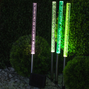 Описание: Садово-парковый светодиодный светильник ERASF024-22 "Пузырьки" станет необычным источником света для Вашего сада. В комплект входит 4 светильника, соединенных между собой. Оптимальная длина позволит Вам разместить конструкцию в палисаднике, украсить декоративный пруд или бассейн, необычно подсветить тропинку или придомовую территорию. Фигурки из ударопрочного пластика высотой 53 см с легкостью втыкаются в землю. Беспроводной LED светильник работает от солнечной батареи. Данный вид получения энергии является наиболее экологичным, энергоемким, а также бесшумным. Питание происходит во включенном режиме "ON", днем. Самое интересное начинается с наступлением темноты. Пузырьки начинают медленно переливаться желтым, зеленым, фиолетовым, розовым и оранжевым цветами. Такое световое шоу будет лучше всего смотреться в особо затемненных местах. Эффект пузырьков придает светильнику динамики, привлекает внимание. Работа от солнечной батареи рассчитана 8 часов непрерывной работы. Высокий показатель пыле и влагозащиты позволяет оставлять светильник на улице в непогоду. Обращаем Ваше внимание, что перед использованием фигурки её необходимо включить и зарядить. Светильник заряжается в течение всего светового дня. Уличный светодиодный светильник от бренда ЭРА лучший вариант для украшения Вашего сада.