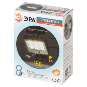 Светодиодный прожектор ЭРА ERAFS048-08 с солнечной панелью и встроенным в корпус датчиком движения. Быстро монтируется в любом месте придомовой территории или загородного участка. Преимущество такого типа освещения — отсутствие привязки к электросети. В течение светового дня солнечная батарея накапливает энергию. С наступлением темноты источник света начинает свою работу.