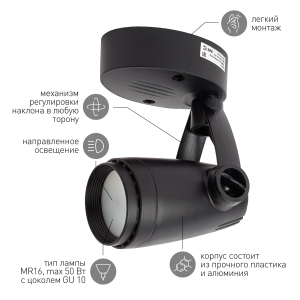 Описание: Светильник OL5 GU10 BK направленного света подчёркивает структуру материалов стен. Создает интересный световой рисунок. Можно использовать как по отдельности, так создавать целые системы. Светильник имеет механизм регулировки наклона в любую сторону. Цоколь для источника света GU10, напряжение питания 220В ~50/60Гц, материал металл + пластик, цвет светильника черный, размер D55*H131 мм, максимальная мощность лампы 50 Вт, степень защиты IP20.