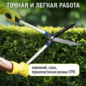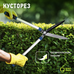 Телескопический кусторез GAECO03-12 Green Apple серии Дача с противоскользящим покрытием предназначен для точного и легкого придания нужной формы кустарникам, снабжен специальными отталкивающими амортизаторами и регулировкой степени прижима лезвий для улучшения комфорта и качества работ. Лезвия с антикоррозийным и грязеотталкивающим покрытием для продолжительного использования и легкого обслуживания. |