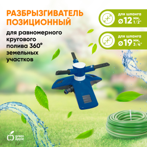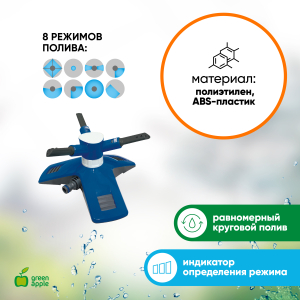 Описание: Разбрызгиватель Green Apple GANS-03 с круговым принципом орошения обеспечивает равномерный и эффективный полив садово-огородных участков. Вращение распылительной насадки по кругу позволяет осуществлять полив в радиусе 360 градусов на участке площадью до 100 м². Данная модель предусматривает 8 режимов, настраиваемых в зависимости от потребностей. Green Apple GANS-03 оснащен быстросъемным соединительным коннектором с уплотнительными вставками и устойчивым основанием. Пластиковый корпус изделия устойчив к повреждениям и неблагоприятным воздействиям.