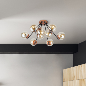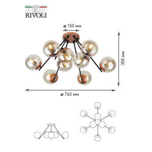 Rivoli Albino итальянские люстры потолочные с небольшими круглыми плафонами и оригинальным расположением рожков. Эти необычные люстры стоит купить за актуальное сочетание черной арматуры и деталей медного оттенка. А также за качественное стекло с легкой теплой тонировкой.