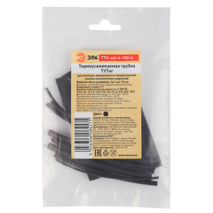 Набор термоусадочных трубок ЭРА TYT-set-9-100-b ТТУ нг-LS 2/1 9 типоразмеров черного цвета по 2 шт L=100 мм