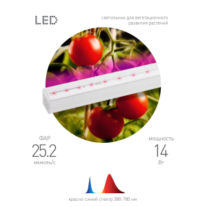 Светильник линейный светодиодный для вегетационного выращивания растений 14 Вт. Красно-синий спектр. |