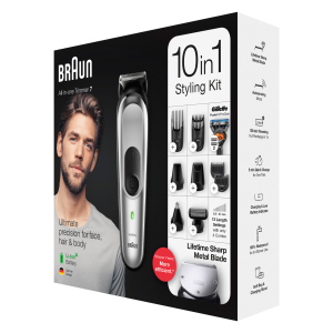 - Триммер 10-в-1 для стрижки бороды, волос на лице, голове, теле, в ушах и носу, а также бесплатная бритва Gillette Fusion5 ProGlide для чистого бритья