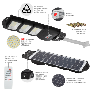 Описание: Консольные уличные LED-светильники ЭРА на солнечных батареях эффективно работают круглый год. Солнечная батарея встроена в корпус и занимает всю внешнюю часть плафона. На внутренней части размещены светодиодные платы (одна или несколько - в звисимости от модели) с яркими и экономичными LED-элементами COB последнего поколения и широкими светоотражателями. Имеют авторежим, позволяющий с успехом экономить заряд. В течение первого часа после включения светят со 100% яркостью, следующие 3 часа - с 70% яркостью и далее до рассвета - с 30% яркостью. Так мы получаем максимально яркий свет в нужное время (вечером, сразу после захода солнца) и гарантию того, что дополнительного освещения хватит до самого утра. Ещё одно важное преимущество для экономии заряда - в светильники встроен датчик движения. Освещение будет включено только в тот период, когда рядом со светильником находятся люди. Это значит, что светильники не будут работать ночью "зря". Обе эти функции - и авторежим, и датчик движения - можно отключать, если для вас они неактуальны. И снова включать, если данные опции понадобились. В комплекте поставляется пульт дистанционного управления, который позволяет на расстоянии включать и выключать свет, отключать датчик движения, устанавливать таймер работы, регулировать яркость. Надёжно защищены от влаги и пыли (IP65) и отлично работают в широком температурном диапазоне (от -20°C до +60°C). Оснащены морозоустойчивым сменным аккумулятором Li-FePO4.