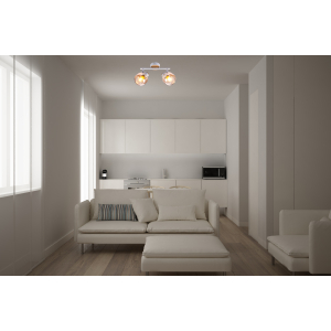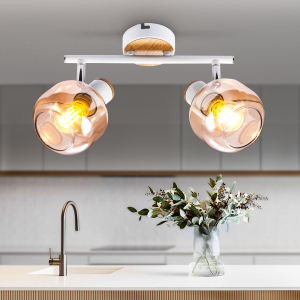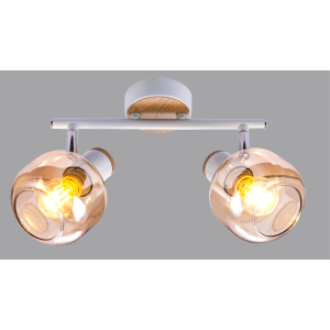 Описание: Светлое дерево греет взгляд и создаёт уютный нежный тандем с аккуратным металлическим каркасом белого цвета. Придаёт изюминку этой идиллии лёгкое перламутровое покрытие плафонов. Эта серия с лёгким ретро-настроением в современных интерьерах смотрится особенно стильно. Серия представлена настенно-потолочным светильником на 2 лампы.