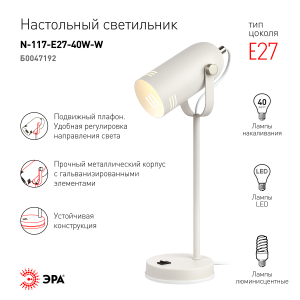 Светильник может использоваться с лампой накаливания, компактной люминесцентной лампой (КЛЛ) или светодиодной (LED) лампой. Металлический корпус с гальванизированными элементами. Устойчивая конструкция. Оптимальные размеры для идеального размещения на столе. Удобная регулировка направления света. Трендовый дизайн и цвета. |