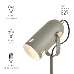Светильник может использоваться с лампой накаливания, компактной люминесцентной лампой (КЛЛ) или светодиодной (LED) лампой. Металлический корпус с гальванизированными элементами. Устойчивая конструкция. Оптимальные размеры для идеального размещения на столе. Удобная регулировка направления света. Трендовый дизайн и цвета. |