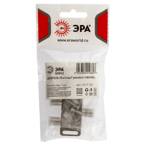 Описание: Телевизионный делитель используется в частных и много квартирах домах для подключения нескольких телевизионных аппаратов к одной антенне. Для установки не требуются специальный инструмент и профессиональные навыки. ТВ делители ЭРА отличает от других производителе высокое качество применяемых материалов, сборки и защита от электромагнитных помех.