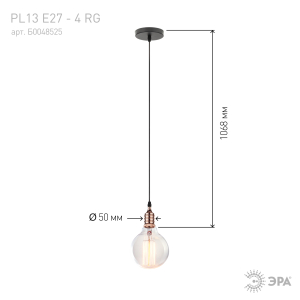 Описание: Светильник подвесной PL13 E27 - 4 RG является универсальным источником света, легко монтируется и демонтируется в потолок. Создает неповторимый дизайн и уют в помещении. Подходит для спален, гостинной, столовой и других комнат. Цоколь для источника света E27, напряжение питания 220В ~50/60Гц, материал алюминий, цвет светильника розовое золото, размер плафона H50*D87+1000 длинна провода, максимальная мощность лампы 50 Вт, степень защиты IP20