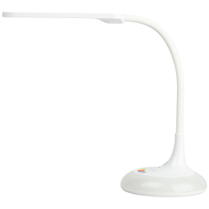 Настольный светильник со светодиодами (LED) в качестве источников света. Выбор цветовой температуры - 3 цвета: 3000К, 4500К, 6000К. Сенсорный переключатель на основании. Плавный диммер для регулировки яркости. RGB LED ночник на основании с независимым сенсорным переключателем, с выбором режимов свечения. Светильник сохраняет выбранные настройки при включении-выключении. Гибкая стойка. |