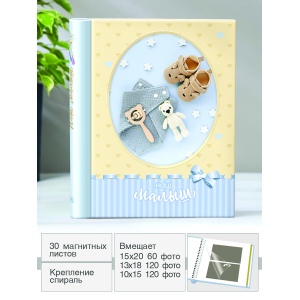 Описание: Фотоальбом с магнитными листами , размер листов 23*28 , крепление -спираль , обложка -картон , 30 магнитных листов, тематика - детская