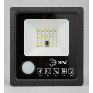Описание: Cветодиодный уличный прожектор ЭРА ERAPRO-20 на солнечных батареях имеет высокую защиту от влаги и пыли (IP65) и функционирует в широком температурном диапазоне (от - 20 до + 50 градусов). В модель встроен морозоустойчивый сменный литий-ионный аккумулятор. Солнечная панель входит в комплект. Время полного заряда составляет 8 часов. В качестве источников света используются сверхъяркие светодиоды последнего поколения в количестве 28 штук. В прожекторе установлен датчик движения: освещение будет включено только в тот период, когда рядом находятся люди. Время до перехода в дежурный режим составляет 30 секунд. Датчик движения имеет возможность отключения. В комплекте поставляется пульт дистанционного управления, который позволяет на расстоянии включать и выключать свет, отключать датчик движения, устанавливать таймер работы, регулировать яркость. Уличный прожектор ЭРА ERAPRO-20 – верный выбор для подсветки дачной территории!