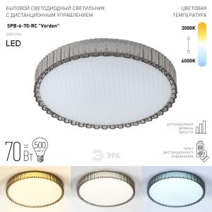 Описание: Светильник светодиодный потолочный ЭРА SPB-6-70-RC серии Verden станет настоящим украшением гостиной. Его отличает классический дизайн рассеивателя в эффектном обрамлении контрастных узоров. При включенной лампе свет мягко рассеивается, наполняя пространство особым домашним теплом. На стальном основании светильника расположена светодиодная плата, оснащенная современным и надежным драйвером. Диаметр светодиодной лампы составляет 50 см. Цветовая температура регулируется в зависимости от необходимости в пределах от 3000 К до 6000 К, яркость свечения также регулируется. Мощность лампы составляет 70 Вт, продолжительность службы 30000 часов. Светодиодный потолочный светильник ЭРА объединяет в себе современные технологии и классический изысканный дизайн.