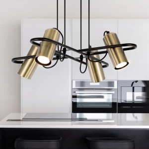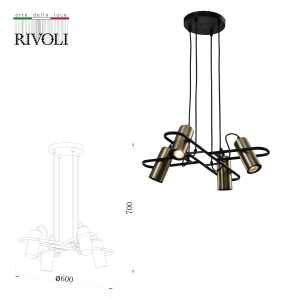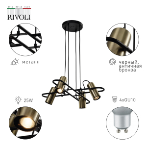 Подвесной светильник-люстра Rivoli Elfreide с 4 металлическими плафонами позволяет менять направление ламп, что дает возможность решить разные дизайнерские задачи и сделать пространство максимально практичным. Эти трендовые подвесные светильники отличаются интересным сочетанием цветов корпуса черный и античная бронза.