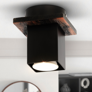 Металлический плафон этой миниатюрной потолочной люстры имеет стойкое гальваническое покрытие не выцветет и не потрескается со временем. Красивый декоративный элемент цвета черного дерева выгодно дополняет геометричный корпус потолочного светильника Luise.