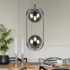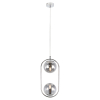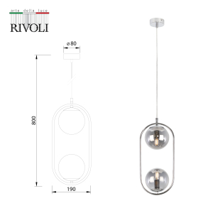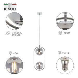 Подвесной светильник Pauline от итальянского бренда Rivoli имеет 2 круглых стеклянных плафона, оригинально расположенных по направлению друг к другу сверху и снизу хромированной овальной арматуры. Эти потолочные подвесные светильники в современном исполнении применяются с лампами Е14 мощностью 40 Вт.