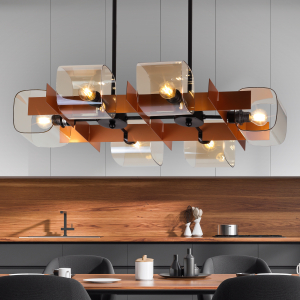Дизайнерские люстры Rivoli Gitte с 6 плафонами коньячного оттенка подходят для большинства современных интерьеров. Арматура люстр на потолок от итальянского бренда изготовлена из прочного металла и окрашена в актуальный медный цвет. С ней отлично сочетается базовый черный подвес с двумя держателями.