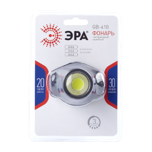 Фонарь налобный светодиодный ЭРА GB-410 на батарейках 3хААА, 3 режима, черный, IP44 |