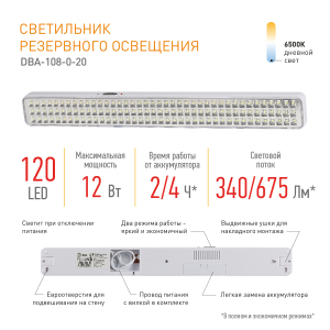 Описание: Светильник аварийный светодиодный. Область применения: Предназначен для освещения путей эвакуации, коридоров, проходов, запасных дверей. Степень защиты от окружающей среды:IP20. Тип рассеивателя: прозрачный. Тип кривой: Д. Габариты: 482x57x30мм.Питающее напряжение светильника:230Вт.
