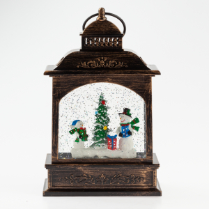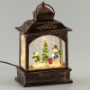 Описание: Новогодний светодиодный светильник ЭРА ENGDS-11 "Снеговики" высотой 21 см (арт. Б0051943) создаст у Вас дома атмосферу уюта и тепла! Светильник фонарь выполнен из ПВХ и окрашен под медь, внутри стекла расположены блестки, создающие эффект падающего снега. Внутри фонарика находятся фигурки двух снеговиков с елочкой, они подсвечиваются 1 светодиодной лампочкой сверху. Фонарь работает от 3 батареек АА, степень защиты IP20 (рекомендуется использовать в помещениях), автоматическое отключение через 6 часов. Этот декоративный светильник станет прекрасным украшением кухни, гостиной, а еще его можно использовать в спальне как ночник. Настольный фонарик под старину - это необычный подарок на Новый год или Рождество, который оценят и взрослые, и дети. Новогодний декор для дома всегда создает праздничное настроение!